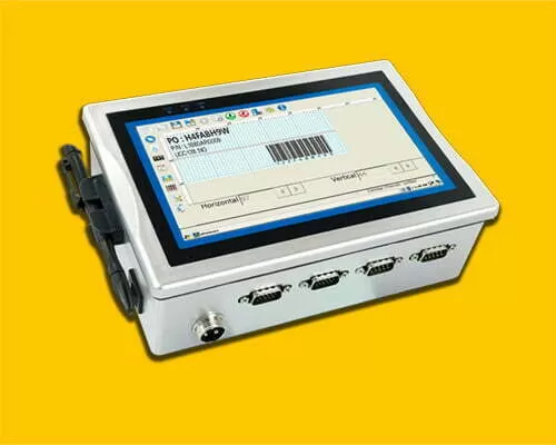 مجهز به کنترلر هوشمند با صفحه نمایش بزرگ و رنگی 7 اینچی لمسی به صورت مجزا از دستگاه و مستقل بدون نیاز به کامپیوتر جهت بالا بردن انعطاف در نصب به ویژه در خطوط تولیدی، که فضای محدودی برای نصب جت پرینتر وجود دارد.