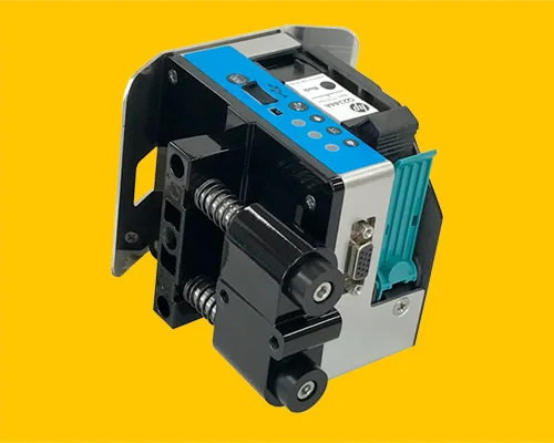 با استفاده از این امکان در خطوط تولیدی که فاصله هد دستگاه تا محصول متغیر می باشد بدون هیچ مشکلی دستگاه قابل نصب بوده و فاصله ایجاد شده توسط فنر های مربوطه در پایه کنترل می گردد.